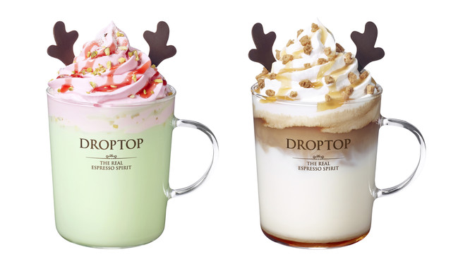 커피전문점 카페 드롭탑은 최근 이색적인 맛의 크림을 담은 ‘루돌프 넛티 라떼’와 ‘루돌프 피스타치오 라떼’를 출시했다. 루돌프 넛티 라떼는 고소한 마카다미아와 달콤한 카라멜, 진한 에스프레소가 어우러진 음료 위에 부드러운 크림을 올리고 소보로 크럼블로 마무리한 음료다.