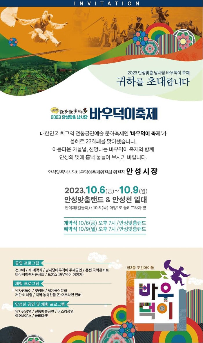 10월 5일 #안성맞춤_바우덕이축제전야제, 6일-9일 안성맞춤 바우덕이축제