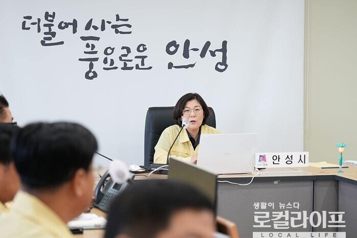 | ▲ 김보라 안성시장이 호우 대비 회의를 주재하고 있다. (사진출처=김보라 페이스북) |