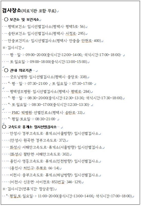 평택시(시장 정장선)는 지난 16일 관내 기업체 및 농축산 농가 등에 근무하는 외국인 중심 집단감염 발생에 따른 지역 내 추가확산 차단을 위한 검사의무화(코로나19 PCR진단) 행정명령을 시행한다고 밝혔다.