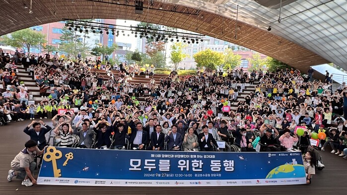 수원시장애인종합복지관이 27일 광교호수공원 마당극장에서 장애인과 비장애인이 함께하는 걷기대회 ‘모두를 위한 동행’을 열었다.