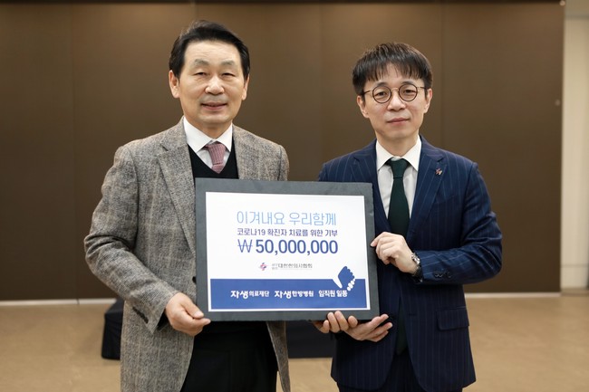 자생의료재단(이사장 박병모)은 16일 코로나19(신종 코로나바이러스 감염증) 극복을 위한 기부금 5000만원을 대한한의사협회에 기탁했다고 밝혔다.