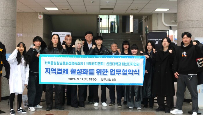 양주시(시장 강수현)가 관내 지역경제 활성화를 위한 ‘업사이클링 프로젝트’에 참여한 경기패션창작스튜디오, ㈜두광디앤피(대표 류현석), 신한대학교 패션디자인과(담당교수 신유지)와 업무협약식을 개최했다고 21일 밝혔다.