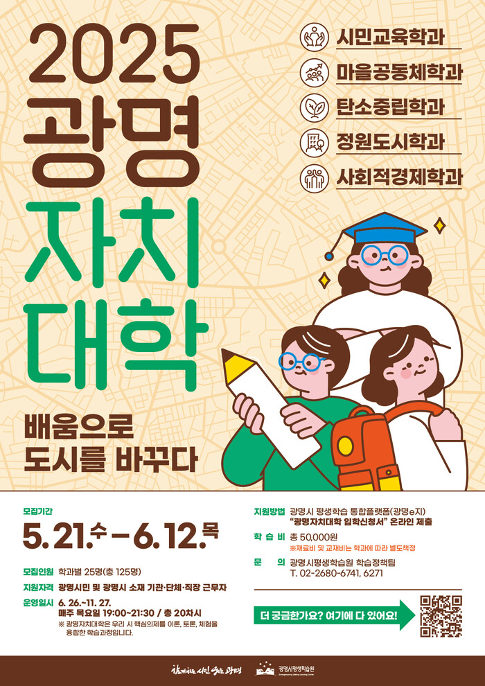 자세한 사항은 광명시 평생학습원(02-2680-6741)으로 문의하면 안내받을 수 있다.