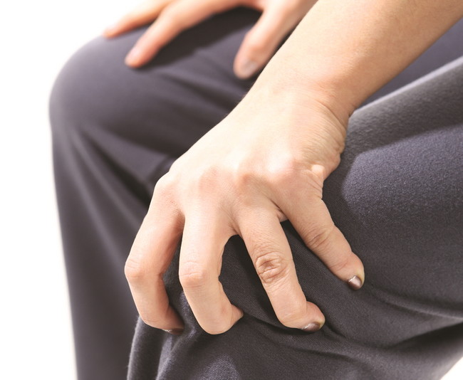 사진/ 한 중년 여성이 무릎 통증을 호소하고 있다<제공=자생한방병원>