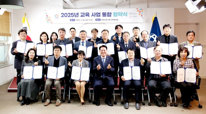 안양시 인재육성재단(이사장 최대호)은 28일 안양시청에서 ‘2025 교육 사업 통합 협약 및 발대식’을 성황리에 개최했다. 협약 및 발대식에서는 공모사업 선정 학교 교장 및 학생 등 400여 명이 참석하여 지역 교육 활성화를 위한 협력의 발판을 마련했다.