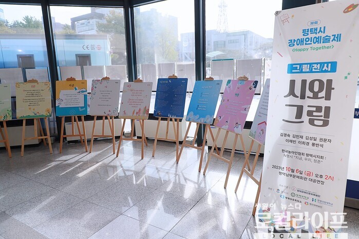| ▲ ‘제1회 평택시 장애인예술제’ 중 그림전시 “시와 그림” 모습. (사진출처=정장선 페이스북) |
