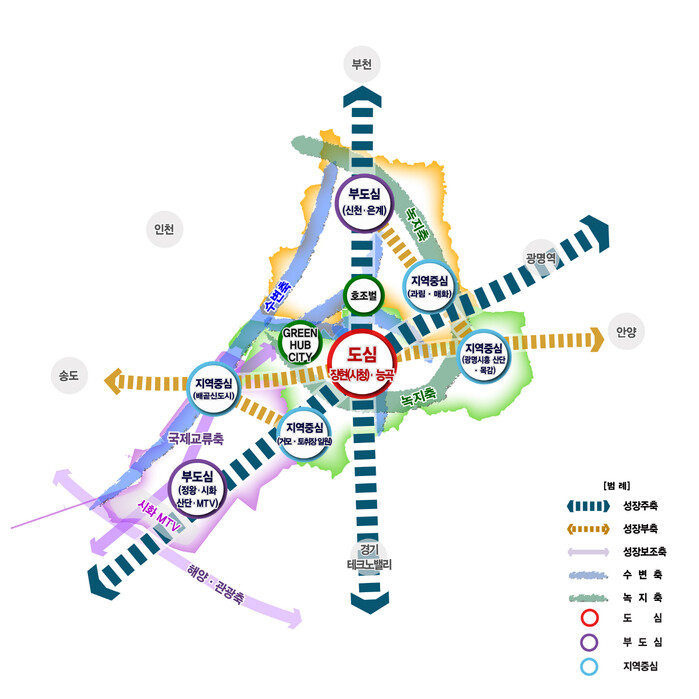 도시미래상은 ‘행복한 시민, 아름다운 자연, 교육ㆍ경제도시 시흥’으로 설정하고, 이를 실현하기 위한 4대 목표를 ‘창조혁신도시, 교육기회도시, 청정그린도시, 안심복지도시’로 제시했다.