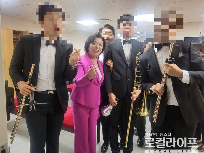 | ▲ 신계용 과천시장이 ‘하트하트 오케스트라’ 단원들과 기념촬영을 하고 있다. (사진출처=신계용 페이스북) |