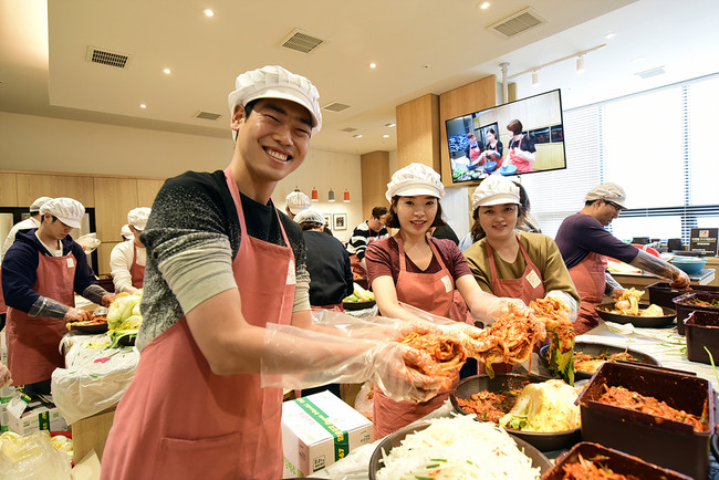 이날 봉사자들은 절임배추 물빼기, 야채 다듬고 썰기, 김칫소 버무리기, 포장에 이르기까지 김치 담그기 전 과정에 참여했다. 또 뮤지엄김치간의 김치전문 에듀케이터는 김치 담그기에 서툰 봉사자들이 김치를 더욱 맛있게 담글 수 있도록 김치담그기 레시피를 전수해 주기도 했다.