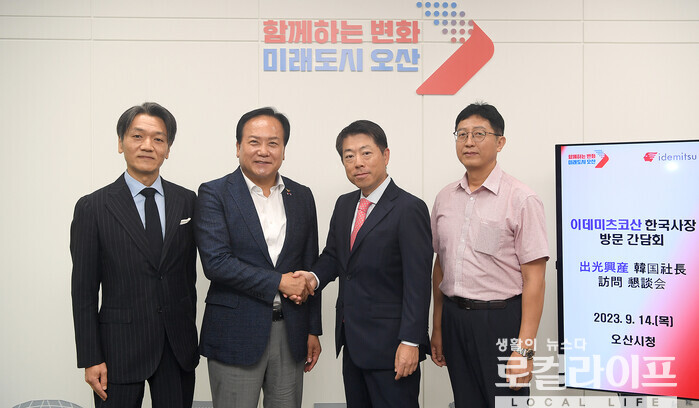 이와 관련해 이권재 오산시장은 15일, 자신의 페이스북에 <오산시-이데미츠코산, 경제자족도시 오산 도약 협력 강화>라는 제목의 글을 올려 “오산시와 이데미츠 어드밴스트 머티리얼즈 코리아가 오산 R&D센터를 바탕으로 경제자족도시 오산 도약을 위한 협력에 함께 나서기로 했다”고 밝혔다.