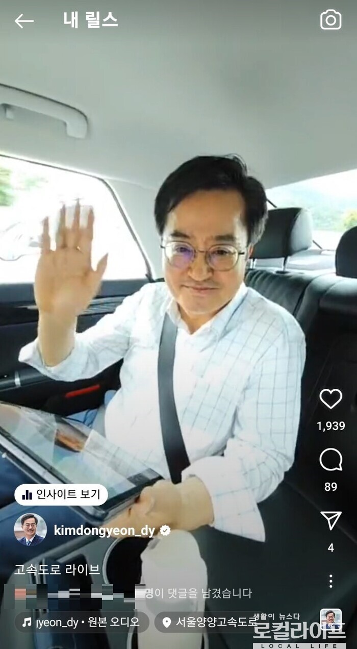 [경기=로컬라이프] 송준형 기자 = 김동연 경기도지사는 지난 주말 ‘서울-양양 고속도로’에서 온라인 라이브 방송을 했다.
