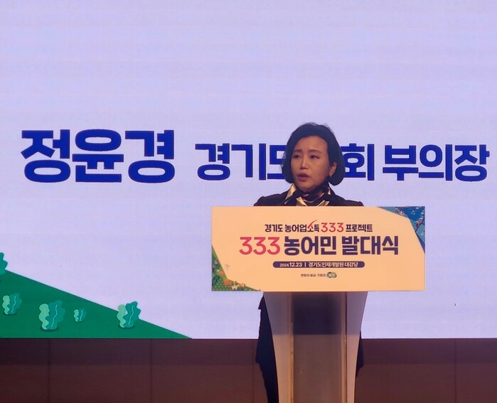 경기도의회 부의장 정윤경(더불어민주당, 군포1) 도의원은 지난 23일(월) 경기도인재개발원 대강당에서 열린 ‘333 농어민 발대식’에 참석해 ‘경기도 농어업 소득 333 프로젝트’에 참석한 농어민 300여 명을 응원했다.