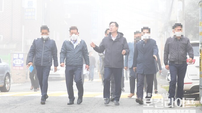 | ▲ 정명근 화성시장이 연쇄 성폭력 범죄자 A씨의 거주지 주변을 시찰하고 있다. (사진출처=정명근 페이스북) |