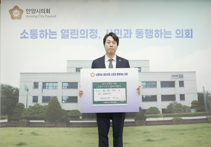 [안양=로컬라이프] 송준형 기자 = 박준모 안양시의회 의장은 광복 80주년을 기념하는 손글씨 피켓 릴레이에 동참했다.