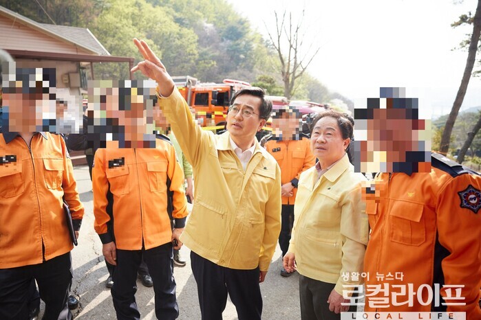 [경기=로컬라이프] 송준형 기자 = 김동연 경기도지사는 3일, 남양주 예봉산 산불 현장을 점검했다.