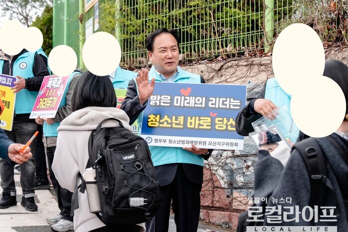 [오산=로컬라이프] 송준형 기자 = 이권재 오산시장은 법무부 청소년범죄예방위원회 오산지구위원회가 16일 성호고등학교 앞에서 진행한 ‘등굣길 청소년 선도 캠페인’에 참여했다.