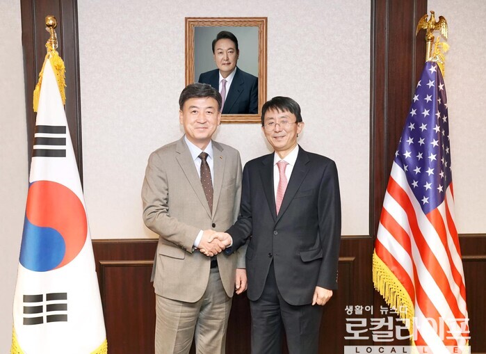 | ▲ 방세환 경기도 광주시장(왼쪽)이 김정한 주시카고 총영사(오른쪽)와 인사를 나누고 있다. (사진출처=방세환 페이스북) |