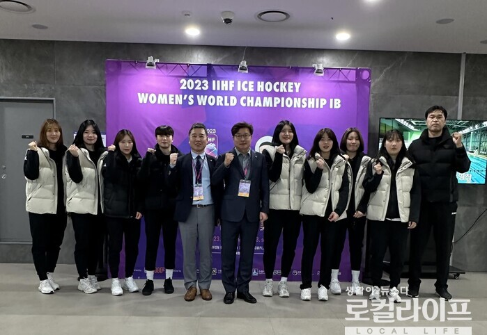 [경기=로컬라이프] 송준형 기자 = 염태영 경기도 경제부지사는 광교복합체육센터에서 열리고 있는 '2023 여자 아이스하키 국제대회'를 찾아 수원시청 여자 아이스하키팀을 비롯한 우리나라 국가대표팀을 응원, 격려했다.