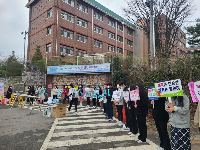 지난 15일(화)에 성호고등학교에서의 민·관 합동 등굣길 캠페인을 시작으로, 16일(수)에는 운암지구 일대에서 청소년유해환경정화 캠페인에 참여하여 1388청소년상담전화 홍보를 실시하고, 22일(화)에는 성호중학교 등굣길캠페인을 진행하며 코로나19로 인해 위축되어있는 청소년들에게 응원의 메시지를 전달하였다.