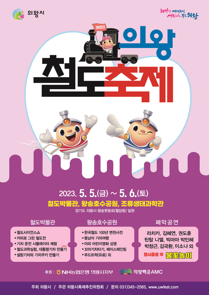 의왕시의 대표 축제인 ‘2023 의왕철도축제’가 오는 5월 5일, 6일 이틀간 왕송호수공원 일원에서 개최된다.