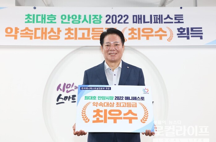 [안양=로컬라이프] 송준형 기자 = 최대호 안양시장이 ‘2022년 매니페스토 약속대상’ 선거공약서 분야 최우수상을 수상했다.