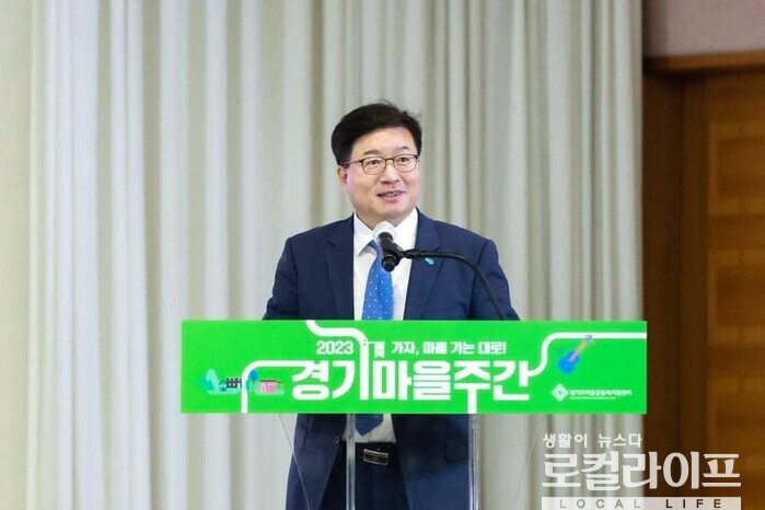 | ▲ 염태영 경기도 경제부지사가 '2023 경기마을주간' 행사에 참석해 인사말을 하고 있다. (사진출처=염태영 페이스북) |
