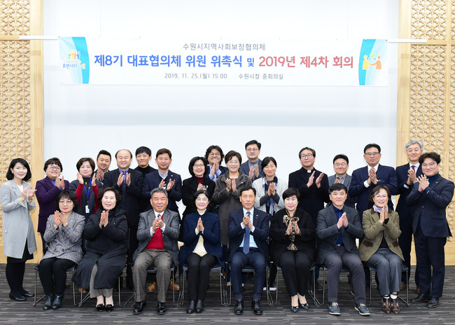 [수원=로컬라이프] 송준형 기자 = 수원시는 25일 시청 중회의실에서 ‘2019년 수원시지역사회보장협의체 제4차 대표협의체 정기회의’를 열고, 제8기 대표협의체 위원 34명을 위촉했다.