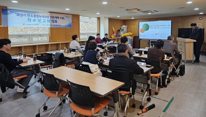화성시(시장 정명근)가 28일 반석산에코스쿨 교육실에서 탄소중립 달성을 위한 ‘탄소중립·녹색성장 기본계획 수립’연구 착수보고회를 개최했다.