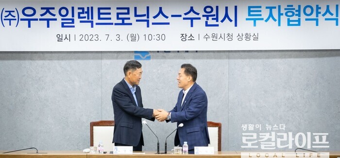 [수원=로컬라이프] 송준형 기자 = 수원특례시와 ㈜우주일렉트로닉스가 투자협약을 체결했다.