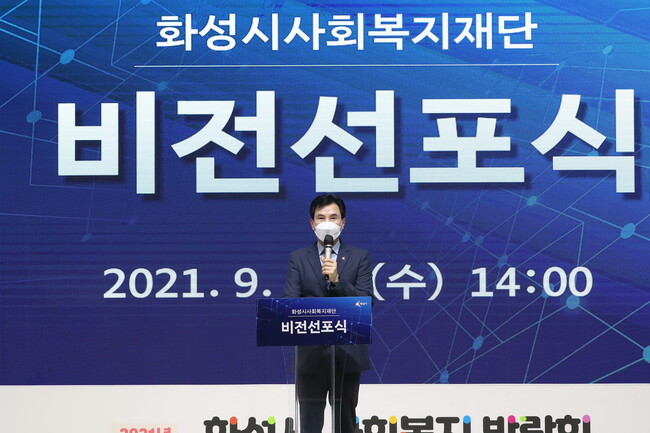 화성시사회복지재단은 선포식을 통해 ‘바른성장 미래도시를 위한 사회서비스의 공공성 제고’라는 비전을 선포하고 주요 경영전략으로 선도적 복지정책 개발 민관 동반성장 거버넌스 구축 사회적 책임 경영체계 실천을 꼽았다.