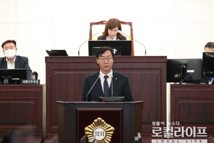 [화성=로컬라이프] 송준형 기자 = 정명근 화성시장이 24일, 시의회에 참석해 시정연설을 했다.