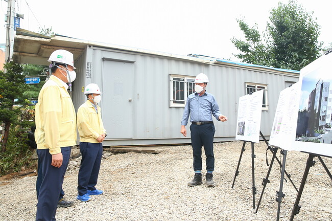 [로컬라이프] 의왕시는 김상돈 의왕시장이 2일, 관계 공무원과 함께 의왕시 오전로 153(오전동 842-2) 일대에 신축중인 (가칭)오전커뮤니티센터 공사현장을 찾아 공사 진행상황을 점검했다고 밝혔다.