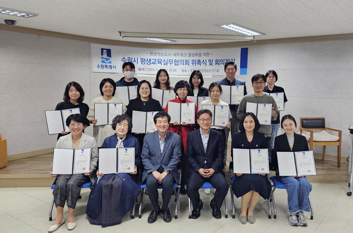수원시(시장 이재준)는 9일 수원시평생학습관에서 수원시평생교육실무협의회 위촉식·회의를 열었다.