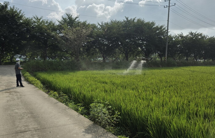 수원시(시장 이재준)는 21일 권선구 금곡동 벼 재배지(금곡동 220-2번지)에서 ‘벼 병해충 드론 방제 연시회’를 열고, 드론 방제 기술을 시연했다.
