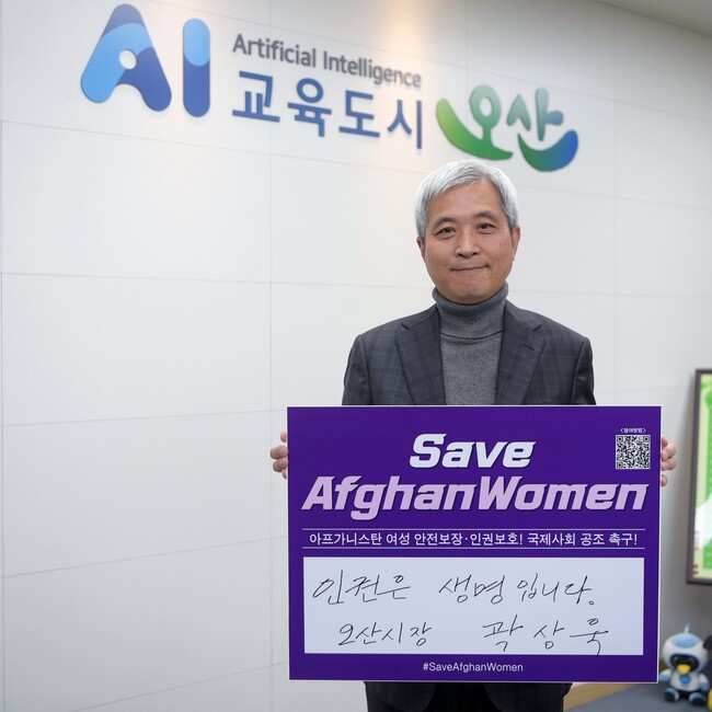 [로컬라이프] 송준형 기자 = 곽상욱 오산시장은 16일, 아프간 여성 인권보장을 촉구하는 ‘세이브 아프간 위민 (SaveAfghanWomen) 챌린지’에 동참했다.