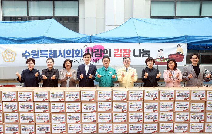수원특례시의회(의장 이재식)가 15일(금) 수원시청 별관 앞 광장에서 연말을 맞아 어려운 이웃에게 따뜻한 온정을 나누기 위한 사랑의 김장나눔 행사를 실시했다.