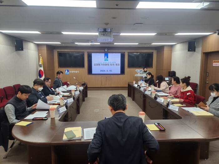 사진/수원시가 지난 15일 ‘2023년도 음식물류 폐기물 발생억제 성과평가위원회’를 열고 있다.(사진제공=수원시)