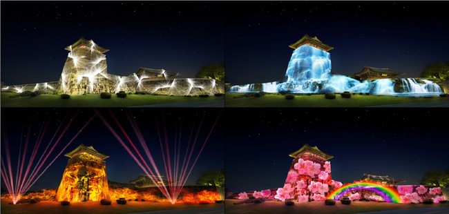 내년 4월 말부터 6월 초까지 수원화성 서북각루·화서문·서북공심돈·북포루 등에서 진행되는 ‘만천명월 : 정조의 꿈, 빛이 되다’는 ▲프로젝션맵핑(대상물의 표면에 빛으로 이뤄진 영상 투사) ▲미디어 파사드(건물 외벽에 LED 조명을 비춰 영상을 표현하는 기법) ▲예술경관조명 ▲3D 사운드 ▲인터렉티브 아트(디지털 기술, 미디어를 이용해 관객과 작품이 상호작용하는 예술) 등을 결합한 대형 미디어 아트쇼다. 정조대왕 능행차 재현과 연계해 개최할 계획이다.