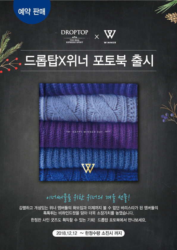커피전문점 카페 드롭탑은 12일부터 공식 홈페이지를 통해 브랜드 모델 위너 포토북 한정판을 온라인 단독 사전 예약 판매한다.