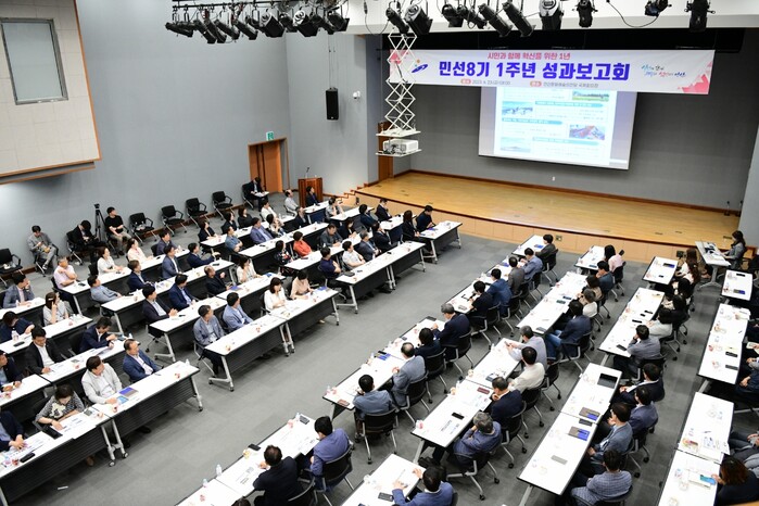 안산시(시장 이민근)는 안산문화예술의전당 국제회의장에서 이민근 시장, 김대순 부시장을 비롯한 5급 이상 간부공무원 130여 명이 참석한 가운데 ‘민선8기 안산시 1주년 성과보고회’를 개최했다고 23일 밝혔다.