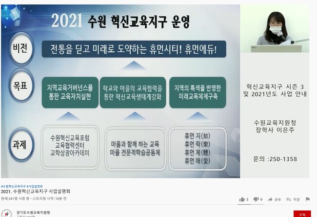 사진/17일, 수원교육지원청 유튜브 채널을 통해 열린 ‘2021 수원 혁신교육지구 사업설명회’(수원시청 제공)