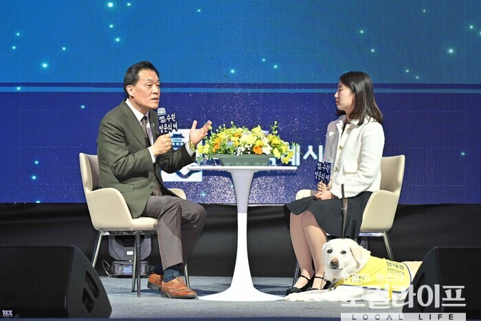 특히, 시각장애인인 허우령 KBS 아나운서가 안내견 하얀이와 함께 무대에 올라 이재준 시장과 '누구나 편하게 즐길 수 있는 열린 관광도시 조성을 주제'로 공감토크를 진행했다.
