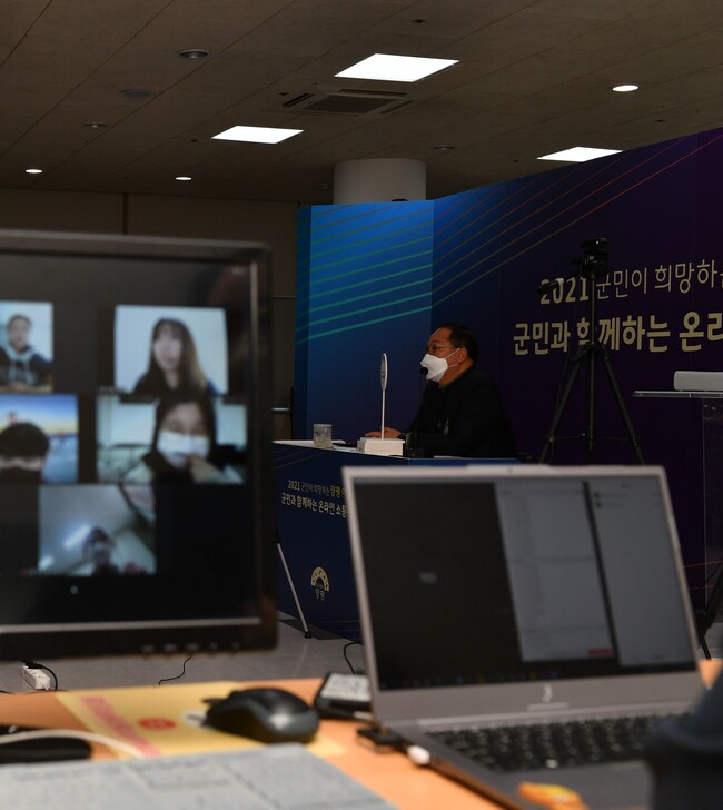 소통한마당은 군정 주요 현안에 대해 지역주민과 함께 토론하는 소통의 장으로 지난 해에는 읍·면 및 주요사업장을 방문하여 주민들과 만나 현안 사항에 대해 논의하였고, 올해는 코로나 19 확산 방지를 위해 비대면 온라인 토론 방식으로 진행하고 있다.