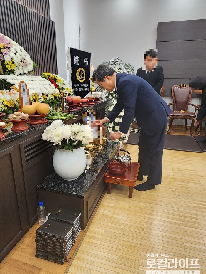 | ▲ 김동연 경기도지사가 고교 동기생의 빈소를 조문하고 있다. (사진출처=김동연 페이스북) |