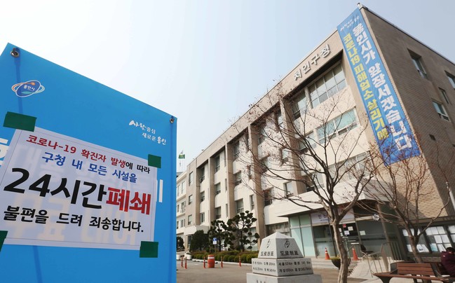시는 이날 처인구청과 상수도사업소, NH농협 처인구청 출장소 직원 등 400여명의 출근을 금지하고 본관과 별관 건물 전체를 임시폐쇄한 뒤 방역소독했다.