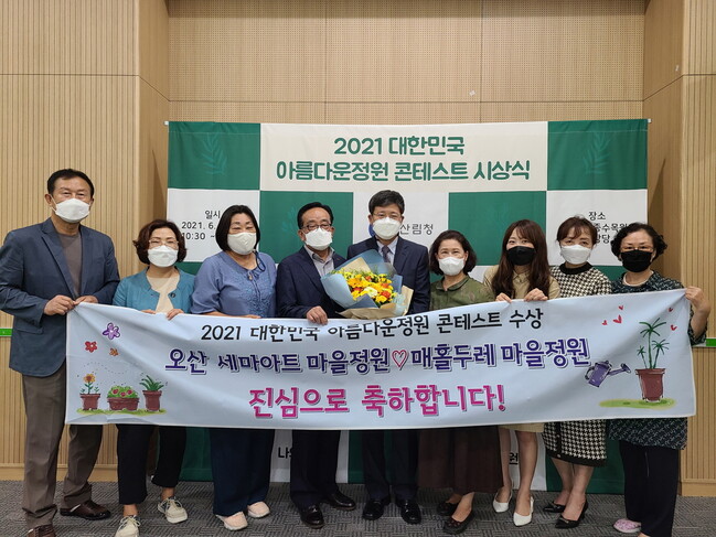 [로컬라이프] 오산시는 29일 산림청이 주관하고 국립세종수목원(세종시 연기면)에서 개최된 ‘2021 대한민국 아름다운정원 콘테스트’시상식에서 관내 마을정원 두 곳이 수상했다고 30일 밝혔다.