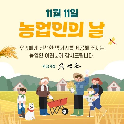[화성=로컬라이프] 송준형 기자 = 정명근 화성시장은 11일, 오늘은 농업인의 긍지와 자부심을 고취시키고, 농업의 중요성을 되새기는 농업인의 날이라고 말했다.