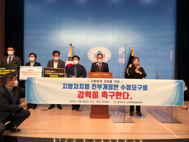 경기도 31개 시·군의회는 각 의회별로 기초의회의 인사권 독립 보장, 의정활동 수당 현실화 등을 촉구하는 「지방자치법 전부개정안 수정요구 촉구 결의안」을 의결하였고, 21대 국회가 이를 조속히 반영해 줄 것을 촉구하기 위해 기자회견을 마련했다.