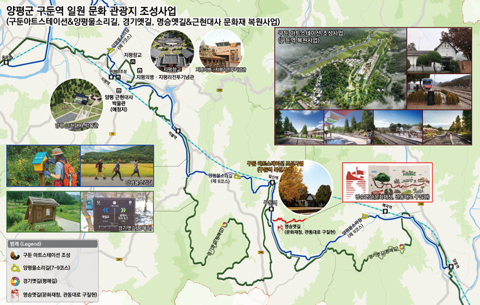 군에서는 구둔역의 역사와 문화의 가치를 보존하고 과거와 현재를 잇는 국내 유일의 관문, 나아가 시공을 초월해 미래를 잇는 명실상부한 글로벌 대표 허브문화공간으로 도약하기 위해 ‘구둔아트스테이션 조성사업’을 추진 중이다. 총 사업비 100억 원, 2024년 준공을 목표로 과거 속에서 미래의 길을 제시하고자 근대문화자원과 연계한 문화 공간 조성으로 양평 동부권에 다양한 관광자원을 구축, 세대를 초월한 문화의 향유와 동부지역의 경제 활성화를 기대해 본다.
